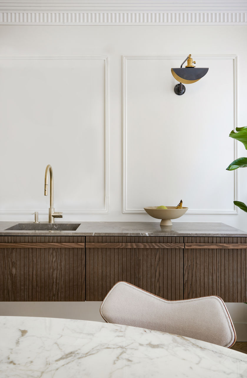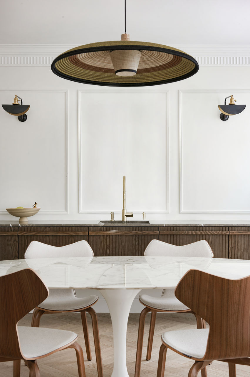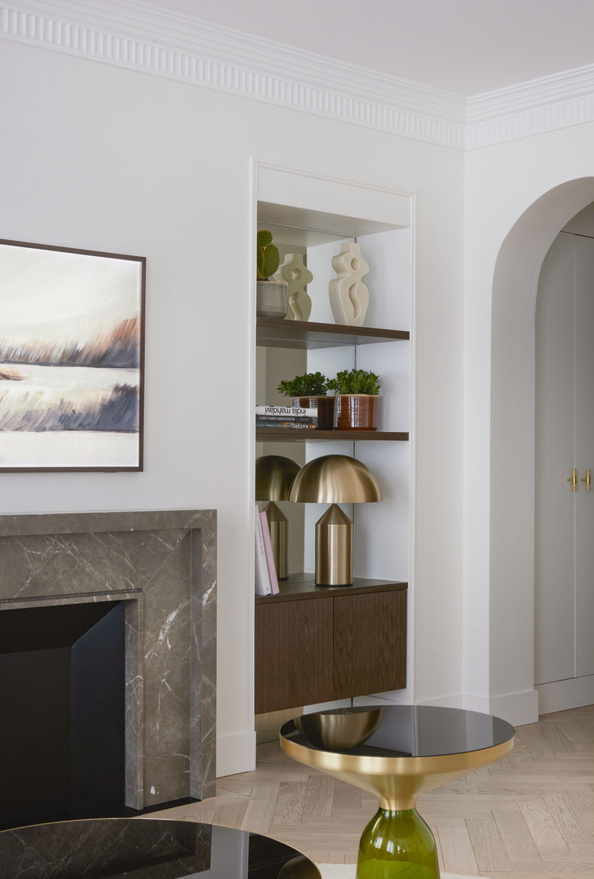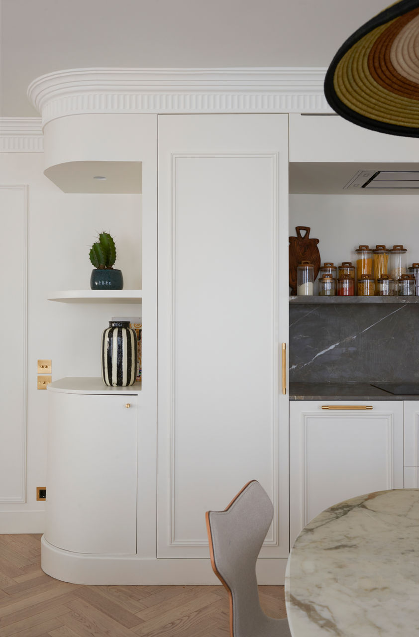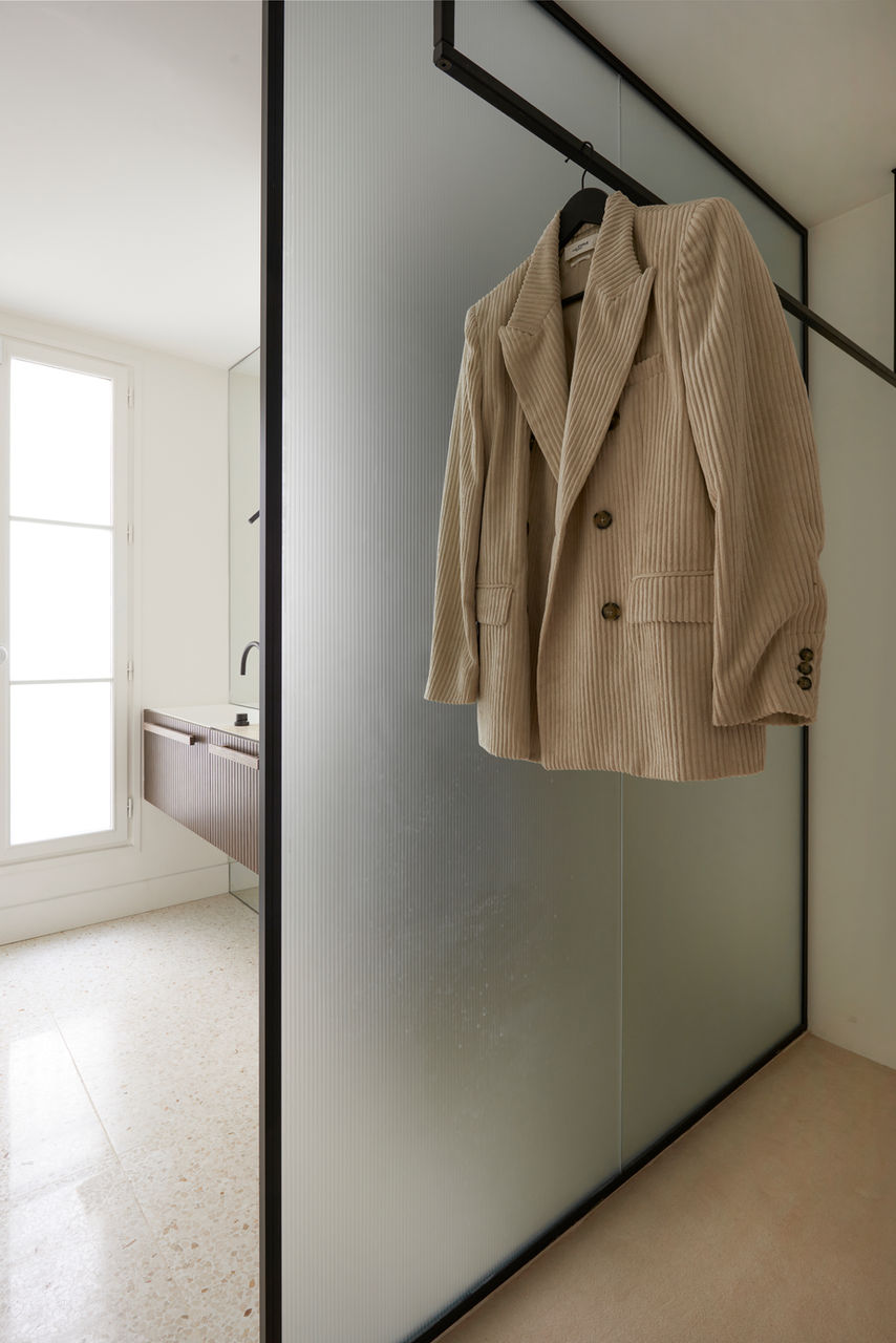 Notre intention première sur ce projet a été de ramener des codes « haussmanniens » revisités. Dans le Projet Saint placide, la douceur des courbes s'associe à la rigueur des moulures et des symétries. L'intérieur est clair, le blanc sert de fond et laisse le bois et la couleur s'exprimer.
